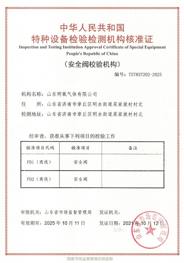 ??? 山東明氧氣體有限公司的前身為始建于1993年的章丘市明水氧氣廠,2020年12月企業(yè)由民營(yíng)獨(dú)資轉(zhuǎn)型升級(jí)為山東明氧氣體有限公司,企業(yè)進(jìn)入新的發(fā)展階段。公司位于山東省濟(jì)南市章丘區(qū)明水街道杲家坡村村北,占地面積4000平方米,注冊(cè)資金500萬(wàn)元,固定資產(chǎn)投資3000萬(wàn)元,主要經(jīng)營(yíng)項(xiàng)目為醫(yī)用氧氣、工業(yè)氧氣、氮?dú)?、高純氮?dú)?、氬氣、高純氬氣、高純氦氣、二氧化碳、混合氣體等各種工業(yè)氣體、高純氣體、混合氣體的充裝銷售、各類氣瓶的銷售、安全閥校驗(yàn)、鋼質(zhì)無(wú)縫氣瓶的檢驗(yàn)等。